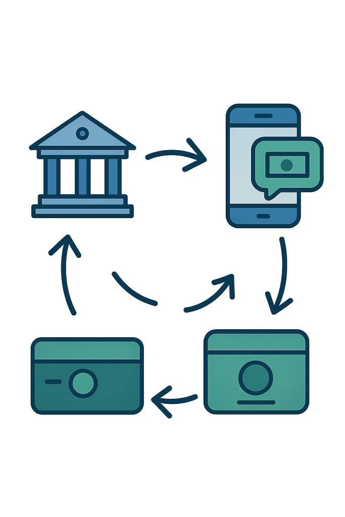 L’interopérabilité des services financiers numériques est la capacité des différents systèmes de paiement (banques, opérateurs mobiles, microfinance) à communiquer entre eux et à permettre des transferts instantanés d’un compte à un autre, quel que soit le type de compte ou l’institution.